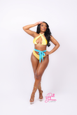 Unbox your bold. The Sunny Side Slay set was made for the spotlight — crafted in buttery-soft, high-shine Lycra that hugs your curves without digging in. The halter-style top features a cross-front neckline that lifts and flatters the bust, with adjustable ties at the neck and back for a flexible, secure fit.